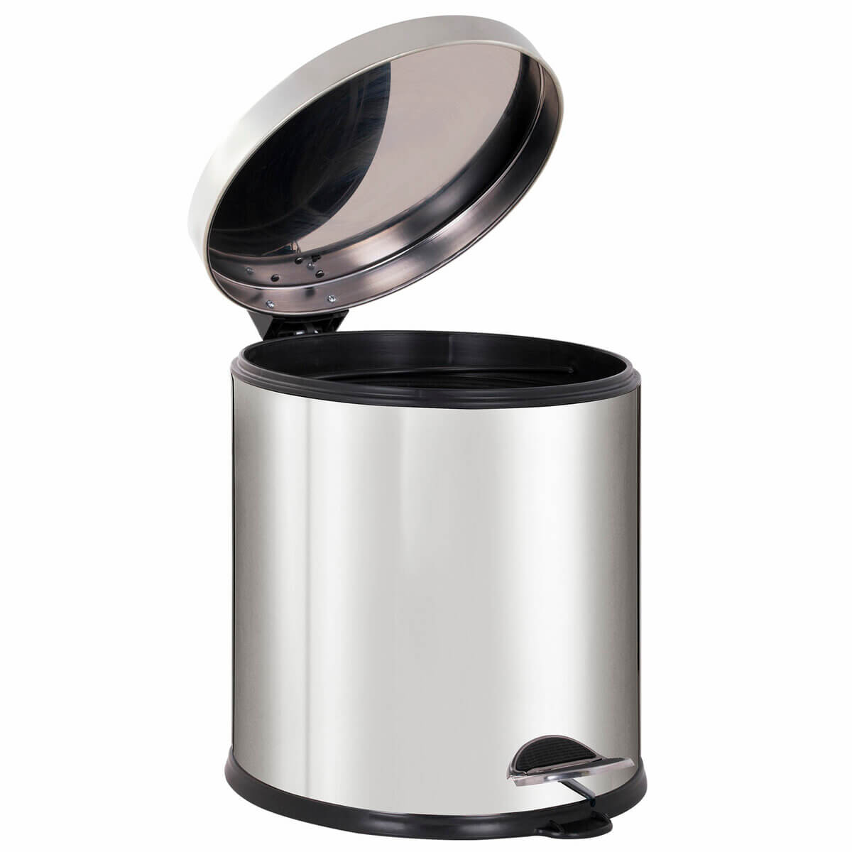Внутреннее съемное пластиковое ведро оснащено удобной рукояткой для легкости извлечения мусора. Ведро изготовлено из нержавеющей стали с антикоррозийным покрытием, что обеспечивает долгий срок службы. Антискользящее основание обеспечивает устойчивость.
